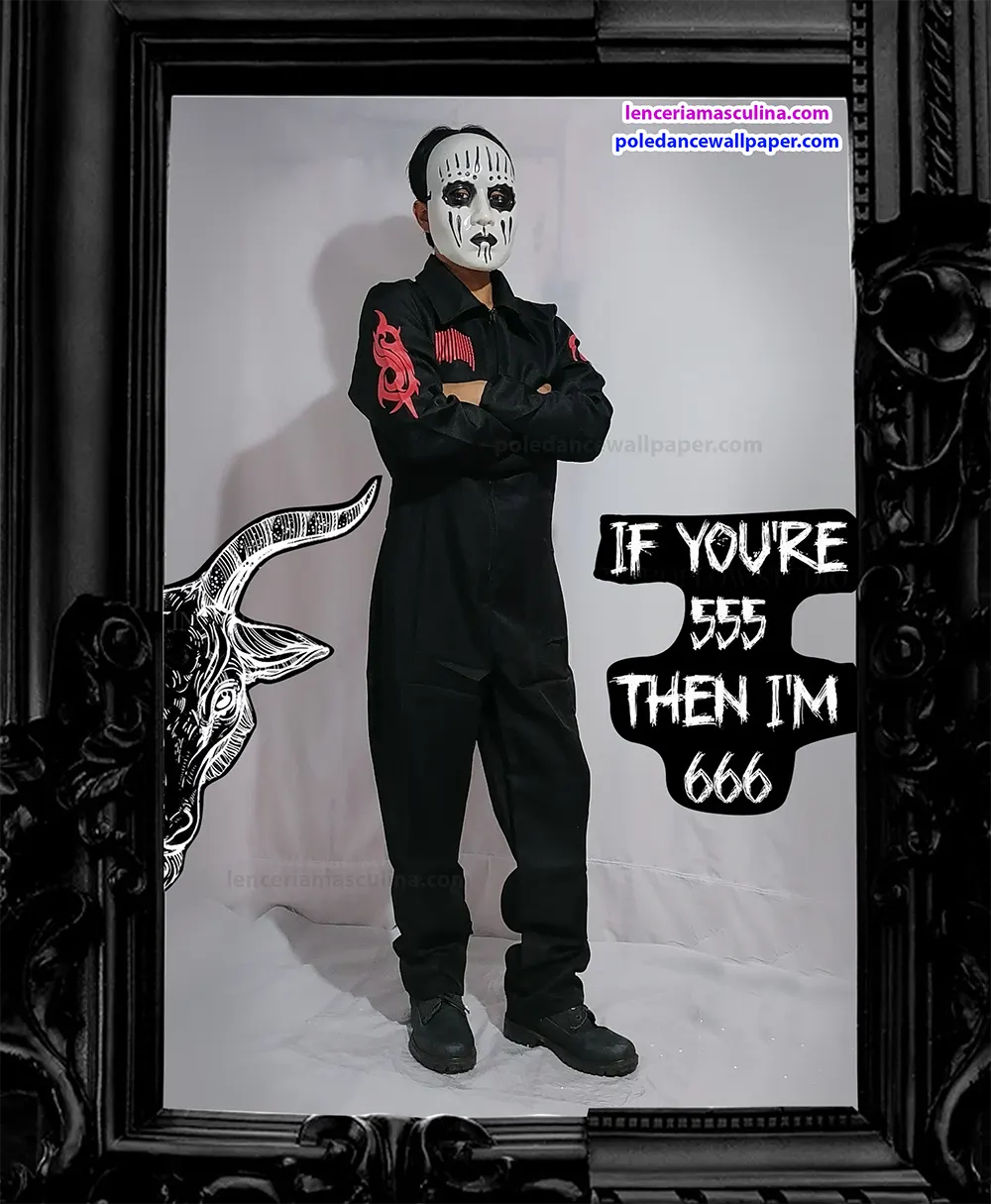- A la derecha, en una tipografía irregular y rústica, se lee la frase: «IF YOU’RE 555 THEN I’M 666» son las letras del tema de la canción que se llama The heretic anthem, un guiño directo a la icónica banda Slipknot y su espíritu transgresor.